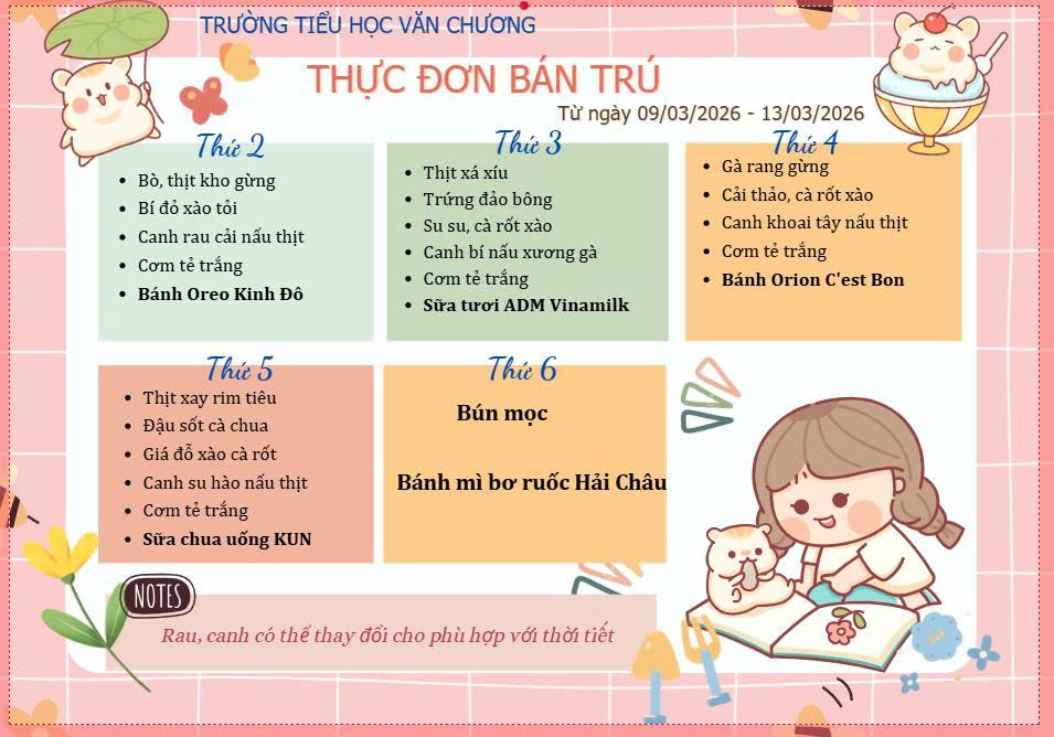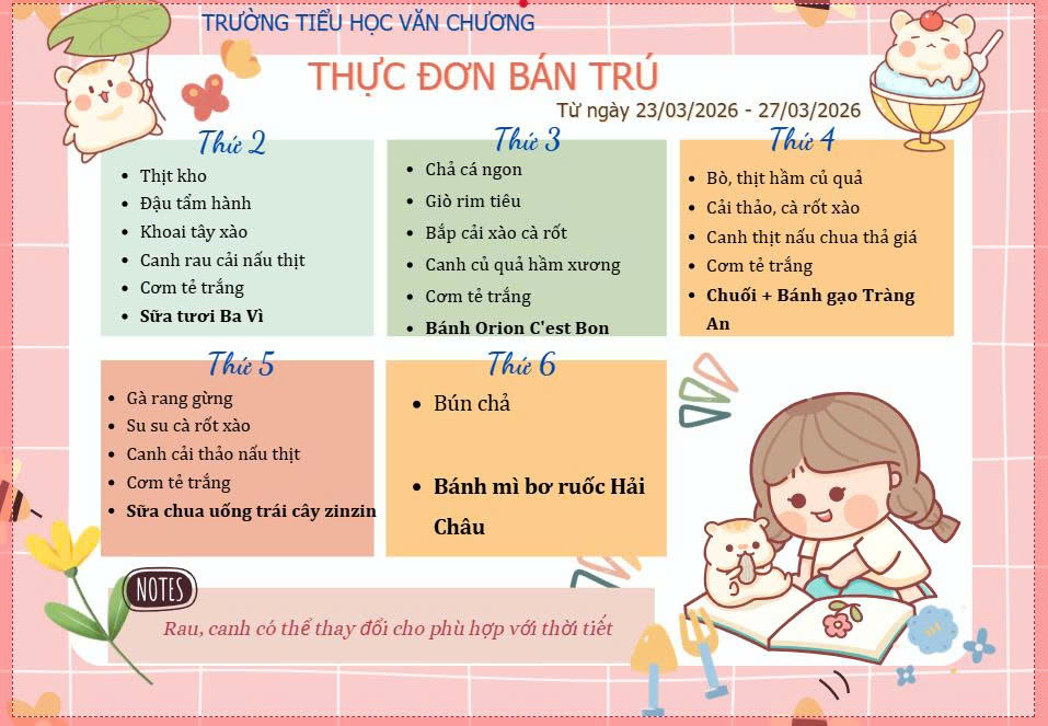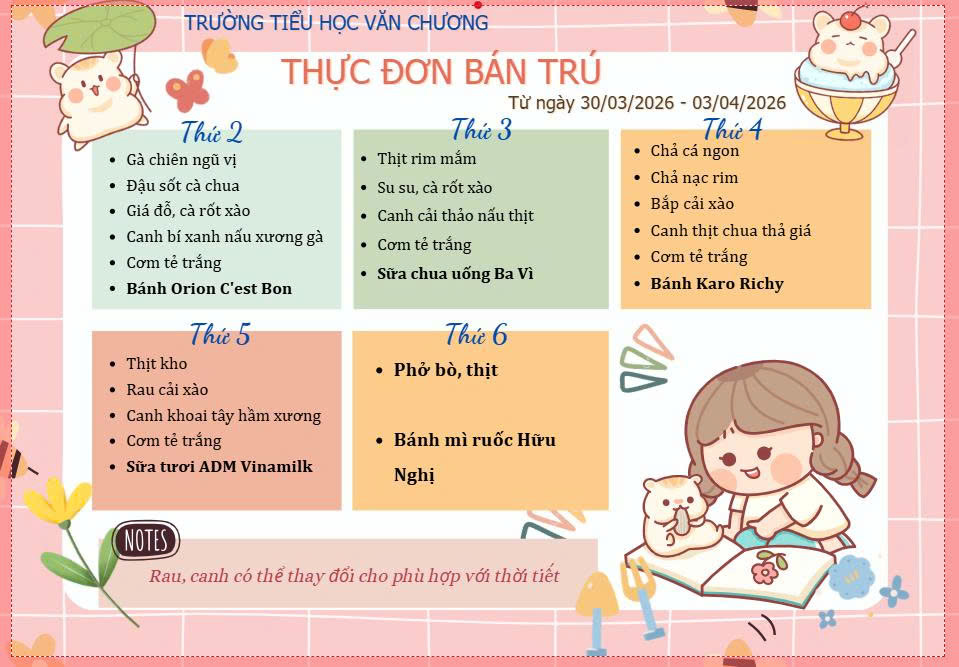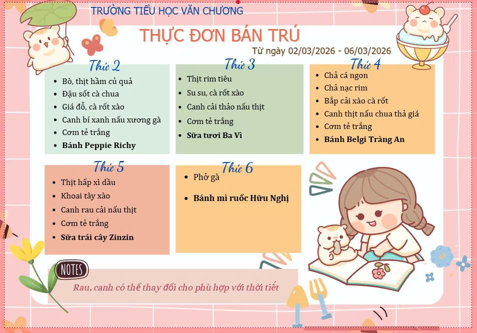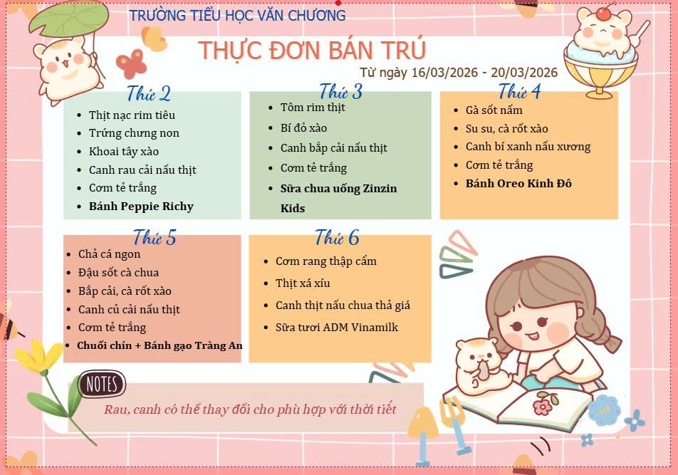 THỰC ĐƠN BÁN TRÚ THÁNG 3 - NĂM HỌC 2025 -2026