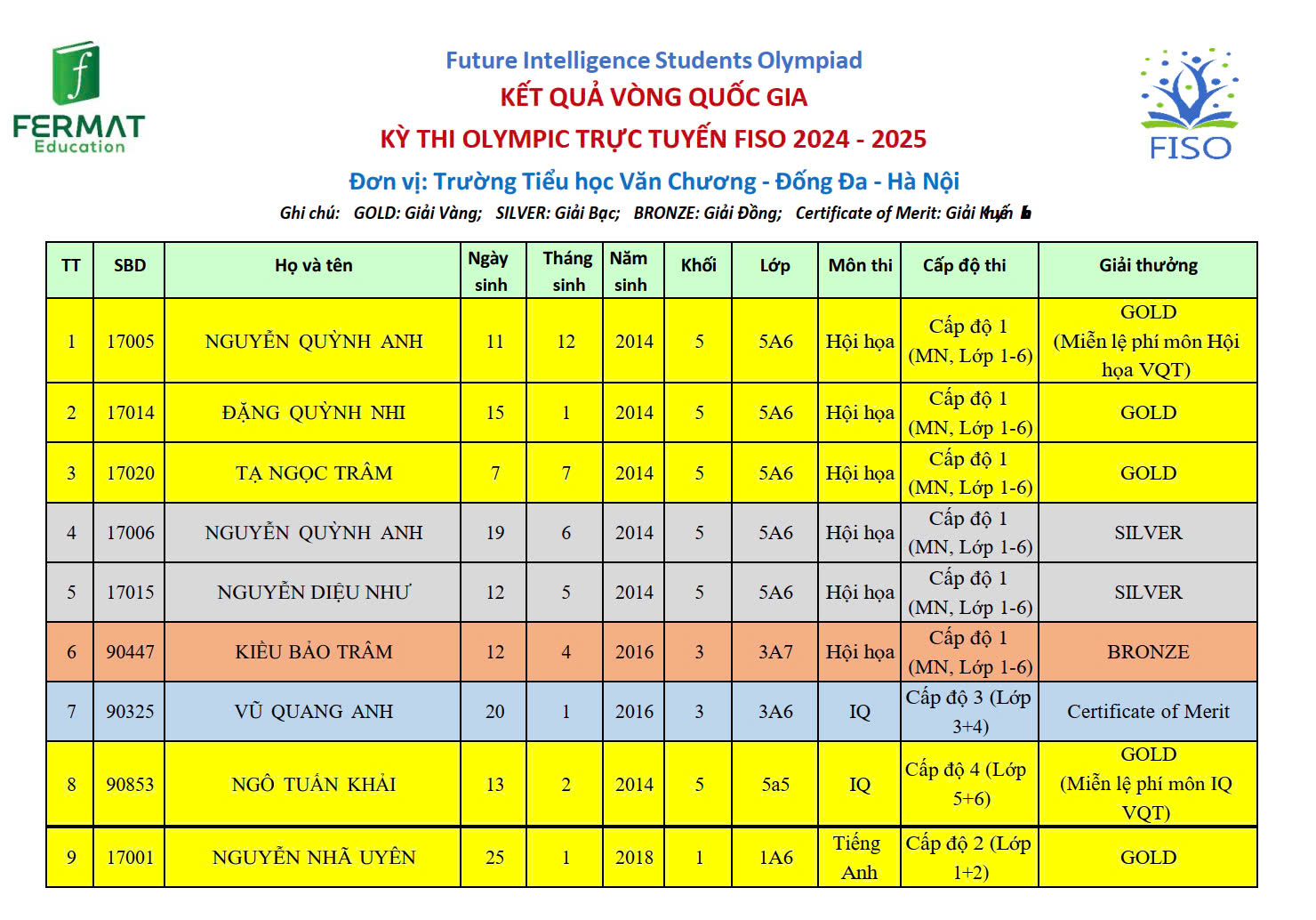 Chúc mừng các bạn học sinh đạt giải cao trong cuộc thi FISO cấp Quốc gia Năm học 2024 -2025