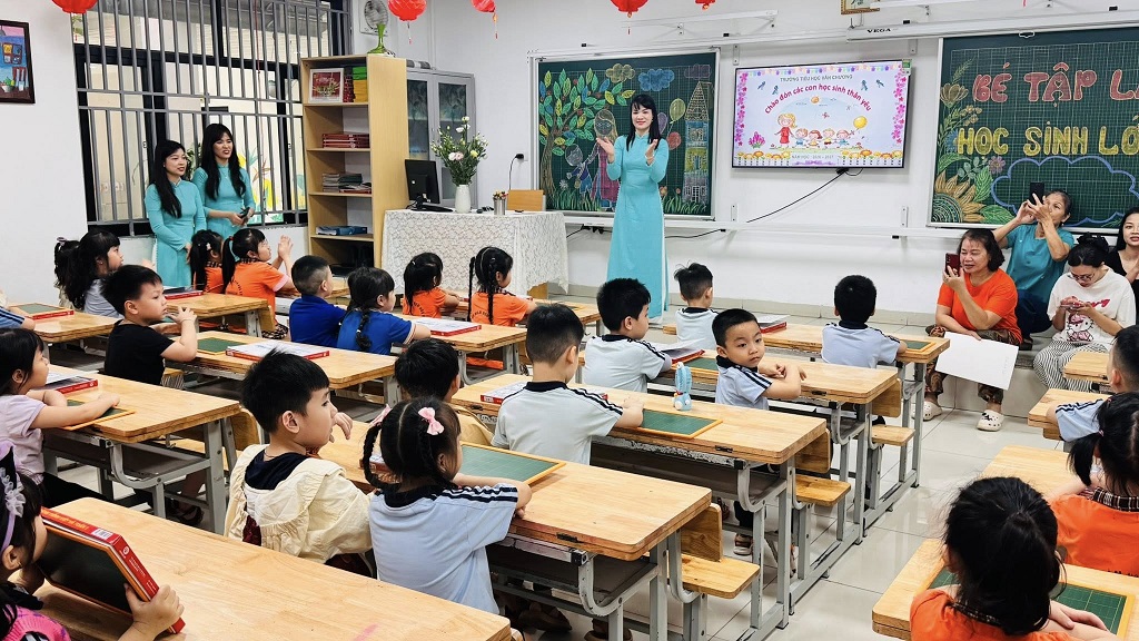 Trong không gian rực rỡ sắc màu, các bạn nhỏ được hòa mình vào những tiết mục văn nghệ sôi động , những màn xiếc thú đầy vui nhộn , rồi háo hức khám phá từng phòng học chức năng hiện đại . Đặc biệt, trải nghiệm “Em tập làm học sinh lớp Một” đã mang đến cho các con những cảm xúc bỡ ngỡ mà đầy tự hào – như một bước chạm nhẹ vào giấc mơ lớn khôn.