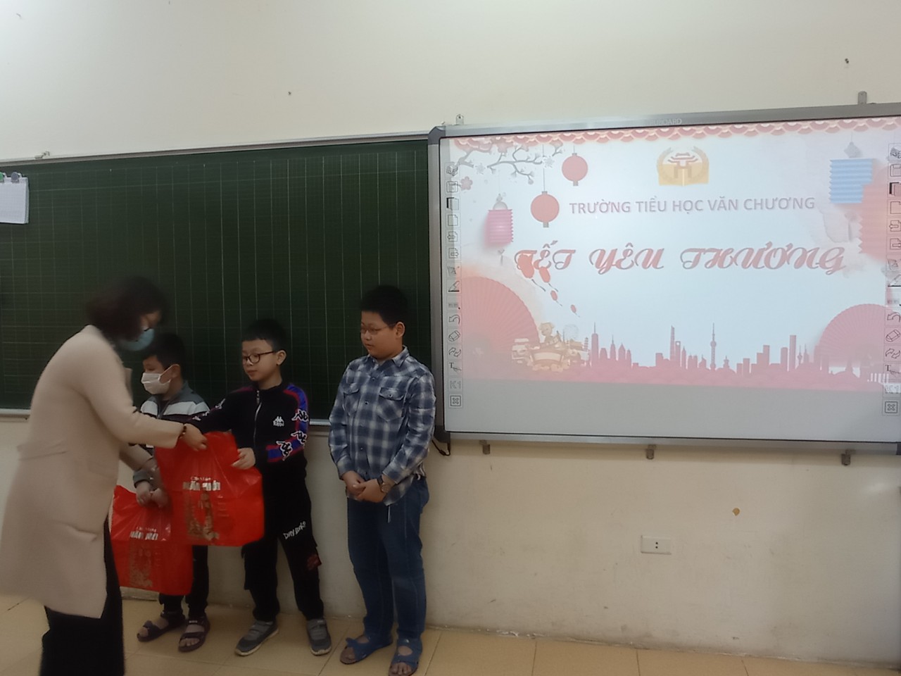Chương trình “Tết yêu thương” là hoạt động thường niên do Trường Tiểu học Văn Chương tổ chức trước dịp tết đến xuân về, nhằm chăm lo cho các con học sinh có hoàn cảnh khó khăn có một cái Tết ấm áp, đủ đầy.