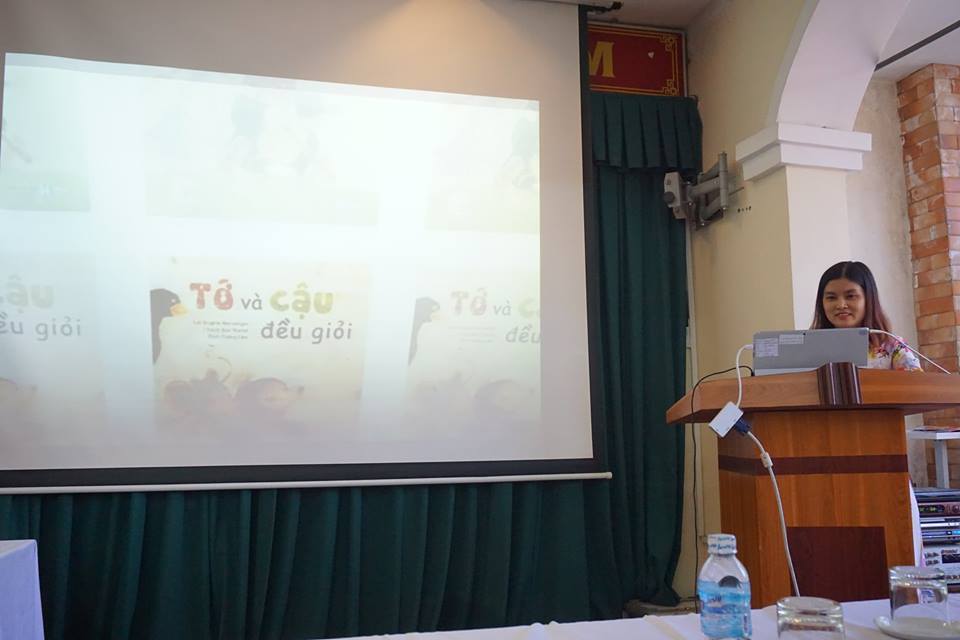 Đ/c phó hiệu trưởng Hoàng Thị Kim Liên lên dẫn chương trình đại hội