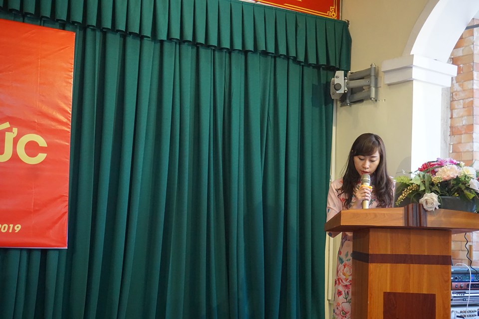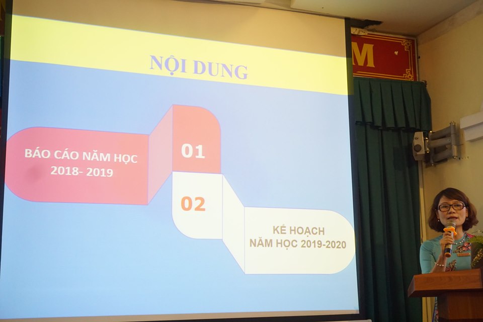 Tại đại hội, đồng chí Hiệu trưởng báo cáo những thành tích đã đạt được trong năm học 2018 - 2019 và đưa ra phương hướng của năm học 2019 - 2020.