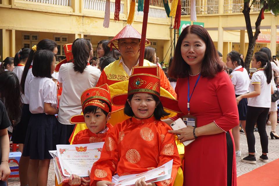 Các cô giáo trong BGH và các cô giáo có học sinh đạt giải đón học sinh về lớp
