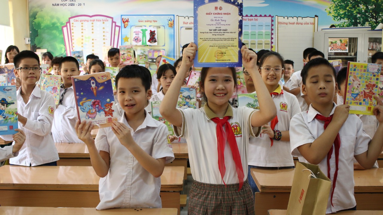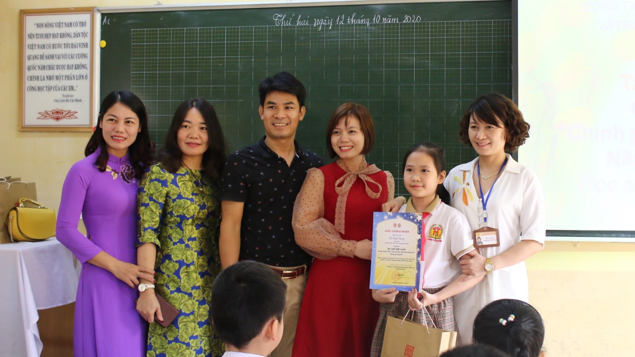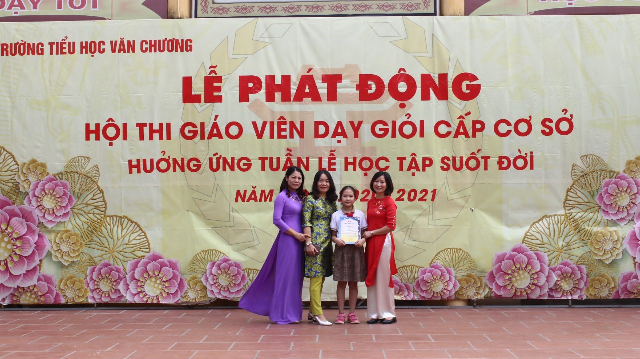 Đại diện công ty Cp Văn phòng phẩm Hồng Hà đã đến trường Tiểu học Văn Chương trao giải
