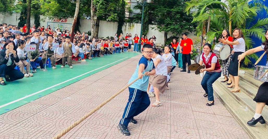 Không kém phần gay cấn là trận kéo co giữa các cô giáo nhà trường – cuộc so tài giữa đội Thần Tốc (các cô khối 1, 2, 3) và đội Siêu Đẳng (các cô khối 4, 5 và bộ môn chuyên biệt). Với sức mạnh, sự phối hợp nhịp nhàng và tinh thần đồng đội cao, đội Siêu Đẳng đã xuất sắc giành chiến thắng, mang đến những tràng pháo tay và tiếng hò reo vang dội khắp sân trường!