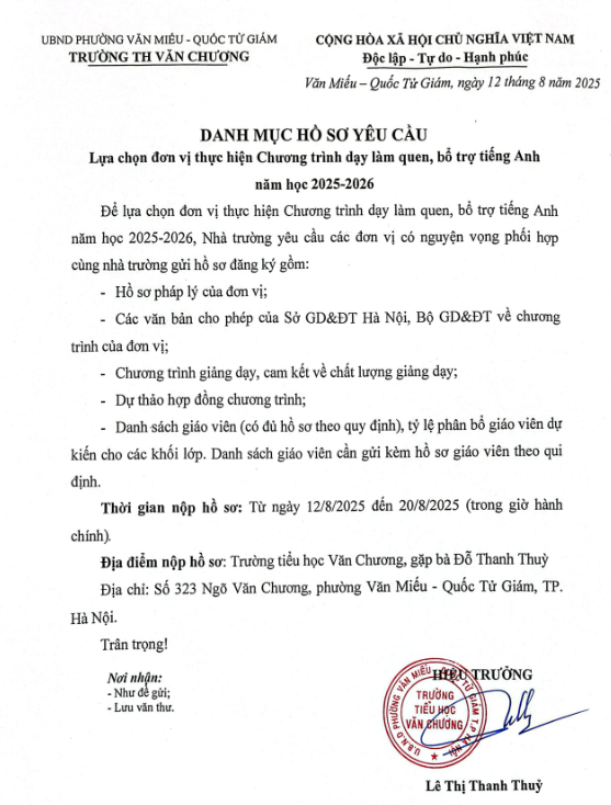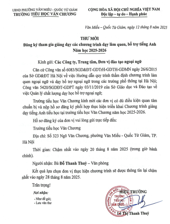 THƯ MỜI ĐĂNG KÍ THAM GIA GIẢNG DẠY CHƯƠNG TRÌNH DẠY LÀM QUEN, BỔ TRỢ TIẾNG ANH NĂM HỌC 2025 -2026