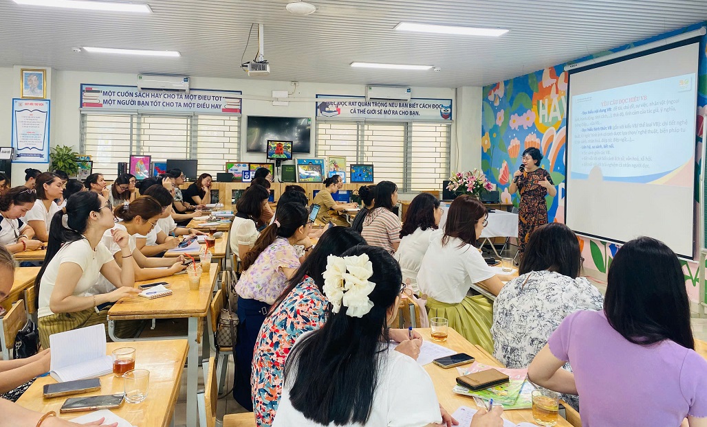 Với giọng nói nhẹ nhàng, gần gũi cùng phong thái truyền đạt đầy nhiệt huyết, PGS.TS Trần Thị Hiền Lương đã giúp các cô giáo của hai nhà trường dễ dàng tiếp thu kiến thức, đồng thời khơi gợi thêm niềm đam mê, tình yêu nghề và tình yêu học trò. Nội dung chia sẻ không chỉ cung cấp những kiến thức, phương pháp thiết thực trong việc xác định mục tiêu bài học và ra đề môn Tiếng Việt, mà còn gợi mở nhiều hướng đổi mới giúp tiết học trở nên sinh động, hiệu quả hơn.