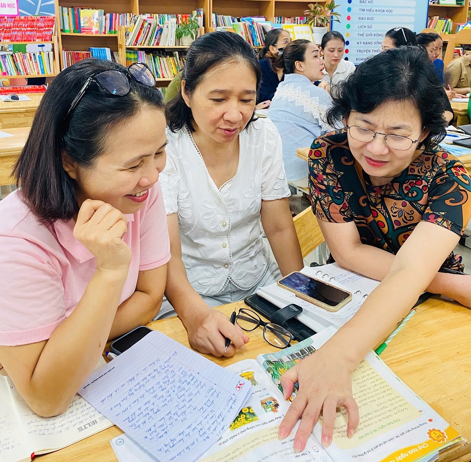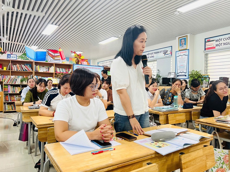 Buổi tập huấn cũng là dịp để các giáo viên trong hai nhà trường giao lưu, học hỏi, trao đổi kinh nghiệm, từ đó vận dụng linh hoạt vào thực tế giảng dạy. Không chỉ dừng lại ở việc nâng cao chuyên môn, buổi học còn truyền thêm năng lượng tích cực, tạo động lực cho các thầy cô tiếp tục đổi mới phương pháp, sáng tạo trong mỗi giờ dạy.